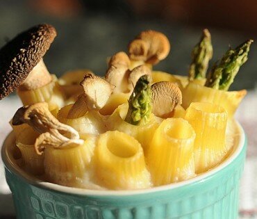 Esses dias vi a Raquel Khoo fazendo essa receita de rigatone com cogumelos e bechamel tradicional. Achei lúdico e lindo, então resolvi adaptar a receita com bechamel de creme de aveia e inclui os aspargos que ficam deliciosos com cogumelos e molho branco.